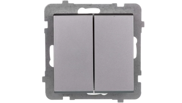 Łącznik podwójny zwierny, srebro mat SONATA o numerze katalogowym ŁP-17R/M/38 w kategorii Łączniki podtynkowe wielobiegunowe, Łączniki wielobiegunowe. Produkt wyprodukowany przez markę OSPEL, seria SONATA.