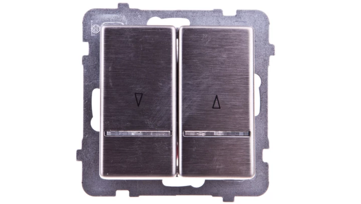 Łącznik żaluzjowy z podświetleniem niebieskim, stal inox SONATA o numerze katalogowym ŁP-7RMS/M/37 w kategorii Łączniki żaluzjowe, Łączniki i gniazda instalacyjne. Produkt wyprodukowany przez markę OSPEL, seria SONATA.