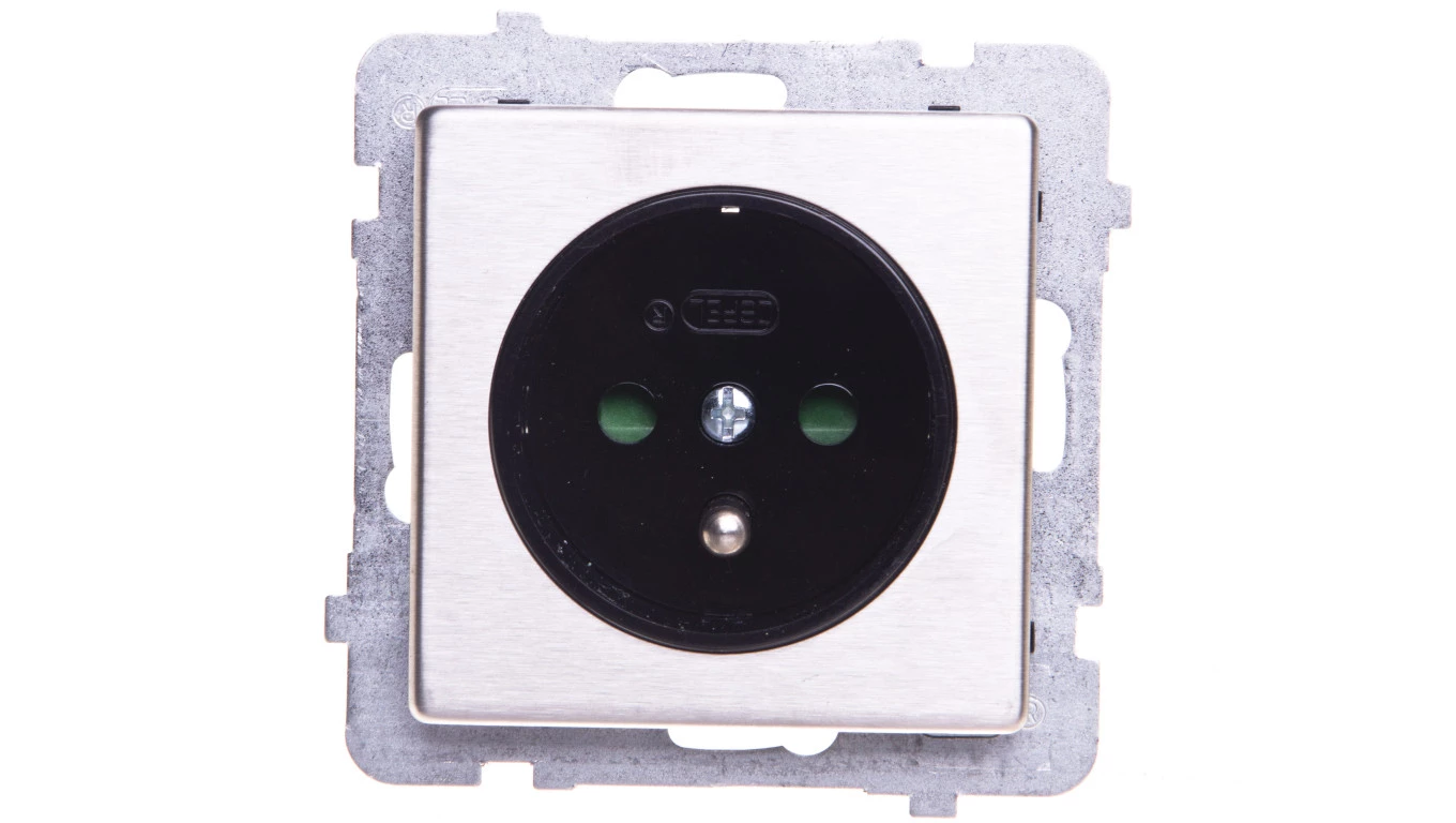 SONATA MODUŁ STAL INOX STAL GNIAZDO 1X Z/U Z PRZESŁONAMI ZACISKI ŚRUBOWE 16A 250V
