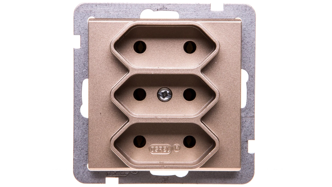 Gniazdo potrójne EURO, szampański złoty SONATA o numerze katalogowym GP-3R/M/39 w kategorii Gniazda podtynkowe, Gniazda instalacyjne. Produkt wyprodukowany przez markę OSPEL, seria SONATA.