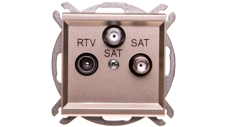 Gniazdo RTV-SAT z dwoma wyjściami SAT, szampański złoty SONATA o numerze katalogowym GPA-R2S/M/39 w kategorii Gniazda teleinformacyjne, multimedialne, Łączniki i gniazda instalacyjne. Produkt wyprodukowany przez markę OSPEL, seria SONATA.