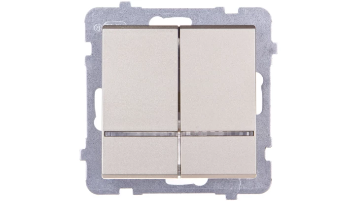Łącznik dwugrupowy świecznikowy z podświetleniem niebieskim, szampański złoty SONATA o numerze katalogowym ŁP-2RS/M/39 w kategorii Łączniki podtynkowe świecznikowe, Łączniki świecznikowe. Produkt wyprodukowany przez markę OSPEL, seria SONATA.