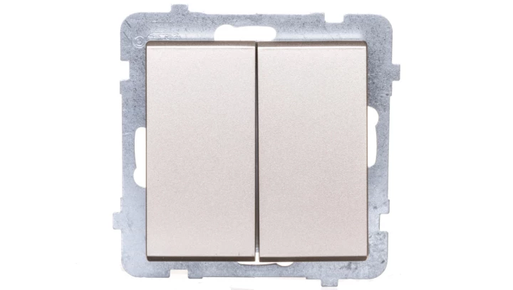 Łącznik podwójny zwierny, szampański złoty SONATA o numerze katalogowym ŁP-17R/M/39 w kategorii Łączniki podtynkowe wielobiegunowe, Łączniki wielobiegunowe. Produkt wyprodukowany przez markę OSPEL, seria SONATA.
