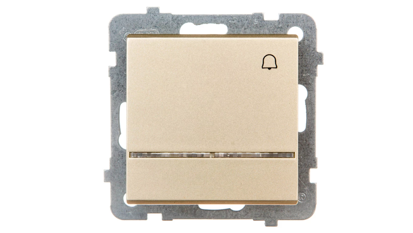 Łącznik zwierny "dzwonek z podświetleniem niebieskim, szampański złoty SONATA o numerze katalogowym ŁP-6RS/M/39 w kategorii Przyciski podtynkowe dzwonki, Przyciski dzwonkowe. Produkt wyprodukowany przez markę OSPEL, seria SONATA.