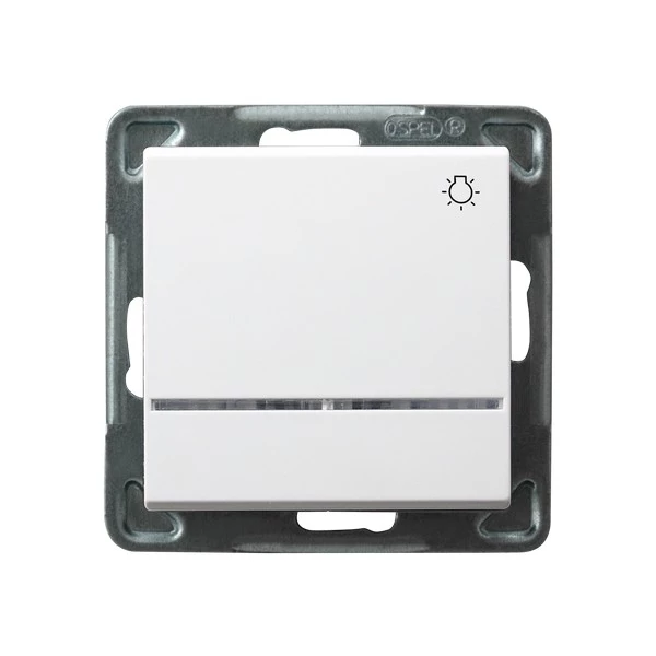 Łącznik zwierny "światło z podświetleniem pomarańczowym, biały SONATA o numerze katalogowym ŁP-5RS/M/00 w kategorii Przyciski podtynkowe "światło", Przyciski "światło". Produkt wyprodukowany przez markę OSPEL, seria SONATA.