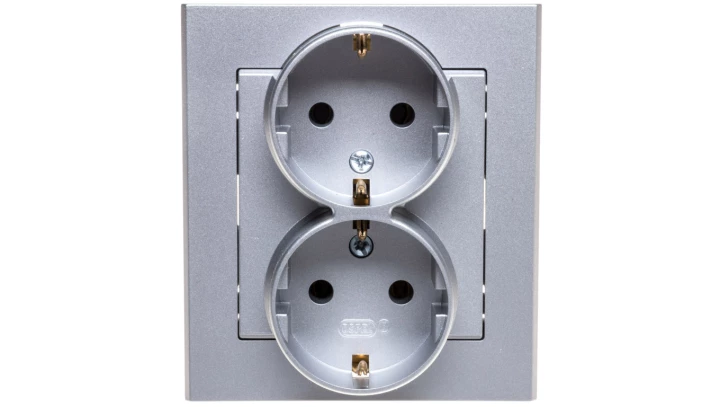 SONATA SREBRNY MAT GNIAZDO 2X SCHUKO ZACISKI ŚRUBOWE 16A 250V