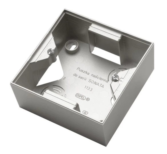 Puszka naścienna do serii SONATA pojedyncza, srebro mat SONATA o numerze katalogowym PNP-1R/38 w kategorii Puszki natynkowe, Puszki instalacyjne. Produkt wyprodukowany przez markę OSPEL, seria SONATA.