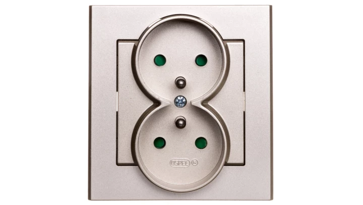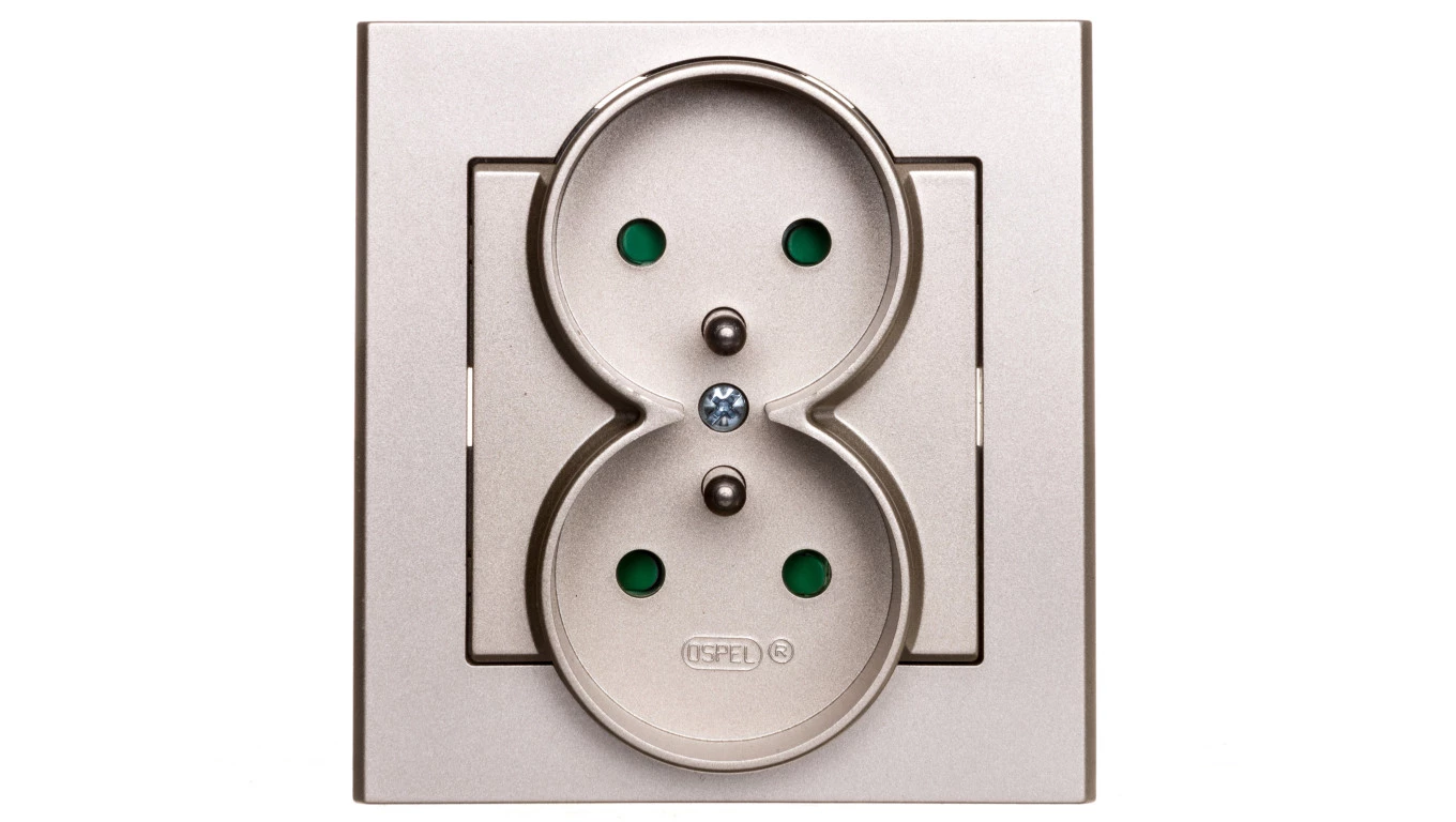 Gniazdo podwójne z uziemieniem z przesłonami torów prądowych, szampański złoty SONATA o numerze katalogowym GP-2RZP/39 w kategorii Gniazda podtynkowe, Gniazda instalacyjne. Produkt wyprodukowany przez markę OSPEL, seria SONATA.