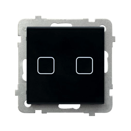 Łącznik dotykowy dwugrupowy świecznikowy z podświetleniem, czarne szkło SONATA TOUCH o numerze katalogowym ŁPD-2RS/M/32 w kategorii Łączniki dotykowe, Łączniki i gniazda instalacyjne. Produkt wyprodukowany przez markę OSPEL, seria SONATA TOUCH.