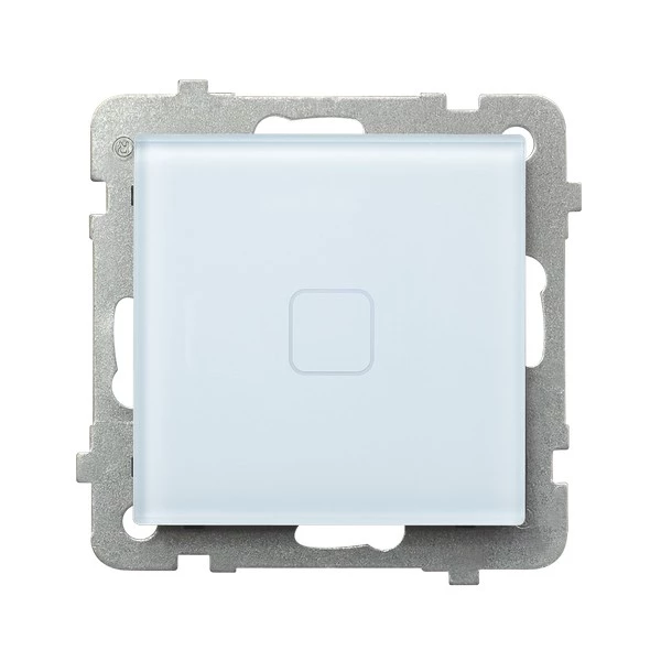 Łącznik dotykowy jednobiegunowy z podświetleniem, białe szkło SONATA TOUCH o numerze katalogowym ŁPD-1RS/M/31 w kategorii Łączniki dotykowe, Łączniki i gniazda instalacyjne. Produkt wyprodukowany przez markę OSPEL, seria SONATA TOUCH.