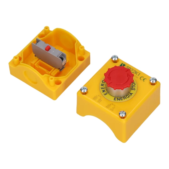 SP22K1\05-2 OBUDOWA KASETA 1X Z PRZYCISKIEM GRZYBKOWYM "STOP" 1Z+1R 2-PRZEPUSTY PRZEZ OBRÓT CZERWONY