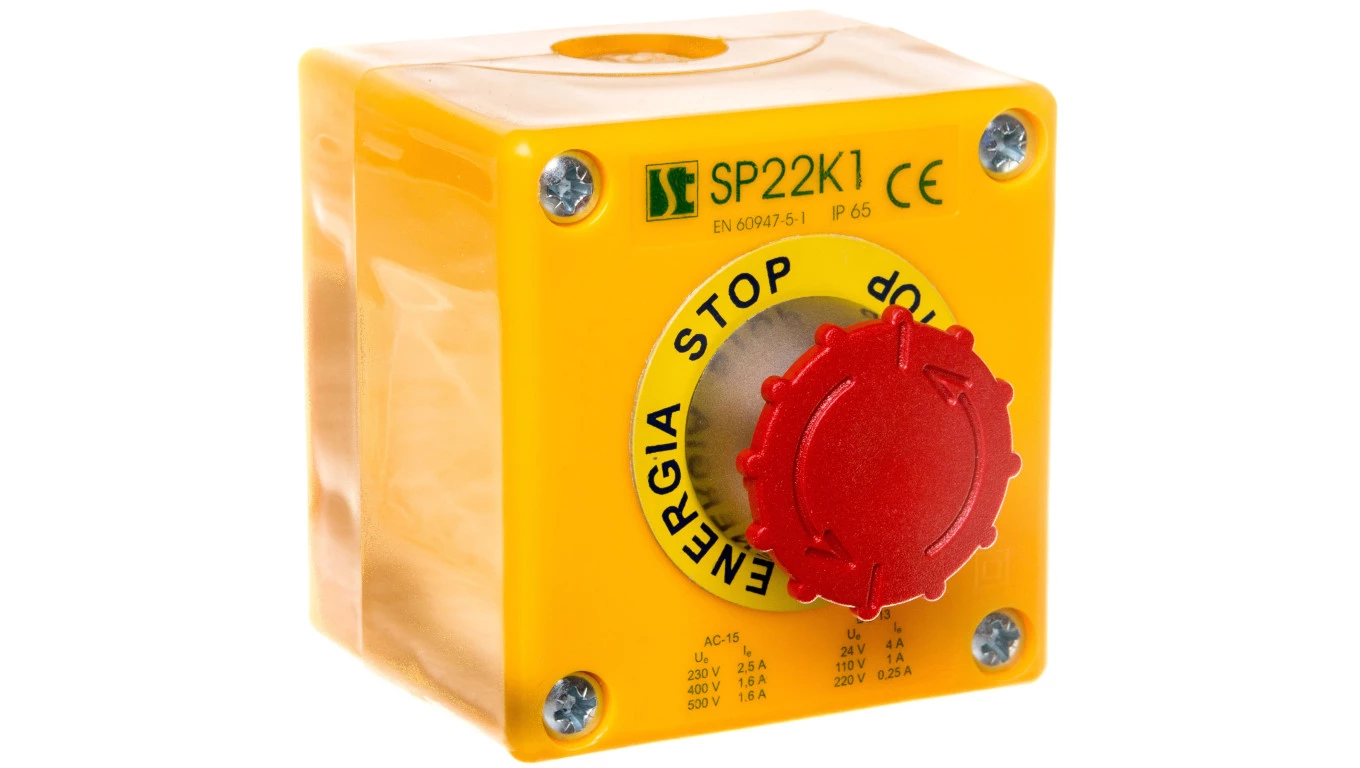 SP22K1\08-1 OBUDOWA KASETA 1X Z PRZYCISKIEM GRZYBKOWYM "STOP" 1Z+1R 1-PRZEPUST PRZEZ OBRÓT CZERWONY