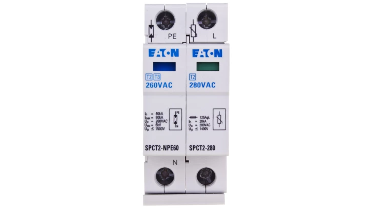 Ogranicznik przepięć SPCT2-280-1+NPE o numerze katalogowym 167619 w kategorii Ograniczniki przepięć typ 2, Ograniczniki przepięć. Produkt wyprodukowany przez markę EATON, seria SPCT2.