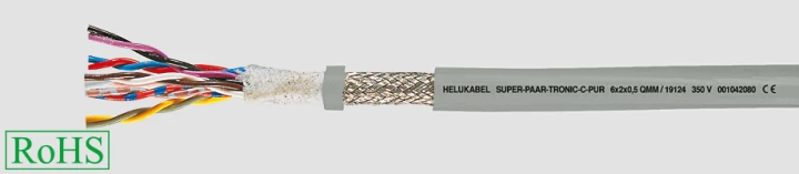 Specjalny przewód PETP-PUR, parowany do zastosowań łańcuchowych zgodny z DIN VDE 0812. Parowany i ekranowany przewód do zastosowań łańcuchowych zalecany jest wszędzie tam, gdzie zakłócenia elektryczne i wysoka częstotliwość mogłyby spowodować zakłócenia w transmisji. Dzięki dużej elastyczności idealny do stosowania w robotyce, w ruchomych częściach maszyn, przy często zmieniających się operacjach, również jako kabel do systemu BUS. Najnowocześniejsza technologia, zgodnie z którą został wykonany ten elastyczny przewód do przesyłu danych, właściwości poślizgowe poliuretanowej opony zewnętrznej oraz odporność na cięcia i adhezję gwarantują jego długą żywotność. Przy zastosowaniach wykraczających poza rozwiązania standardowe (np. w kompostowniach lub instalacjach z ekstremalnie wysoką prędkością przemieszczania) proponujemy skorzystać ze specjalnego formularza zapytań dla systemów energetycznych lub skonsultować się z przedstawicielem Helukabel Polska Sp. z o.o. Przy stosowaniu w łańcuchach energetycznych trzeba przestrzegać zasad układania kabla. Należy zapoznać się z instrukcją przed zastosowaniem przewodu w instalacji w prowadnikach kablowych. Szczegółowe dane techniczne patrz: tabela kabli do prowadników kablowych.