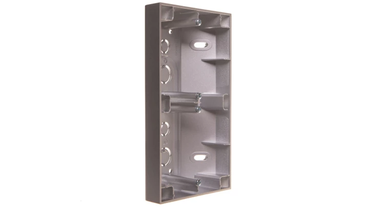 Puszka natynkowa narożna 2-krotna do ramek PREMIUM, srebrny mat Simon54 o numerze katalogowym DPNR2/43 w kategorii Puszki natynkowe, Puszki instalacyjne. Produkt wyprodukowany przez markę KONTAKT-SIMON, seria SIMON 54.