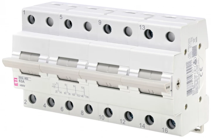 SSQ 463 PRZEŁĄCZNIK TRÓJPOŁOŻENIOWY MODUŁOWY 63A 4-BIEGUNOWY