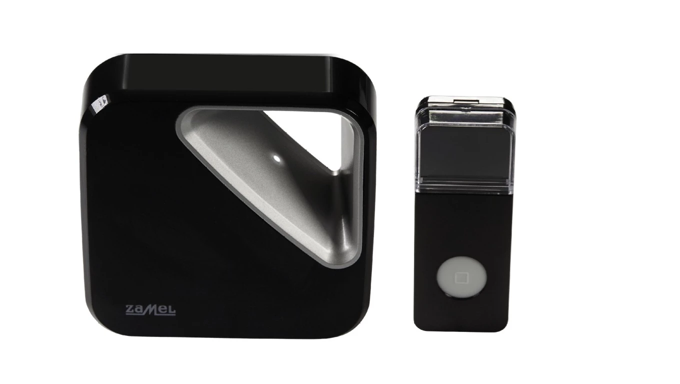 Dzwonek bezprzewodowy bateryjny, ZUMBA, zasięg 150 metrów, TYP: ST-390, czarny o numerze katalogowym SUN10000422 w kategorii Dzwonki bezprzewodowe, Dzwonki i gongi. Produkt wyprodukowany przez markę ZAMEL.