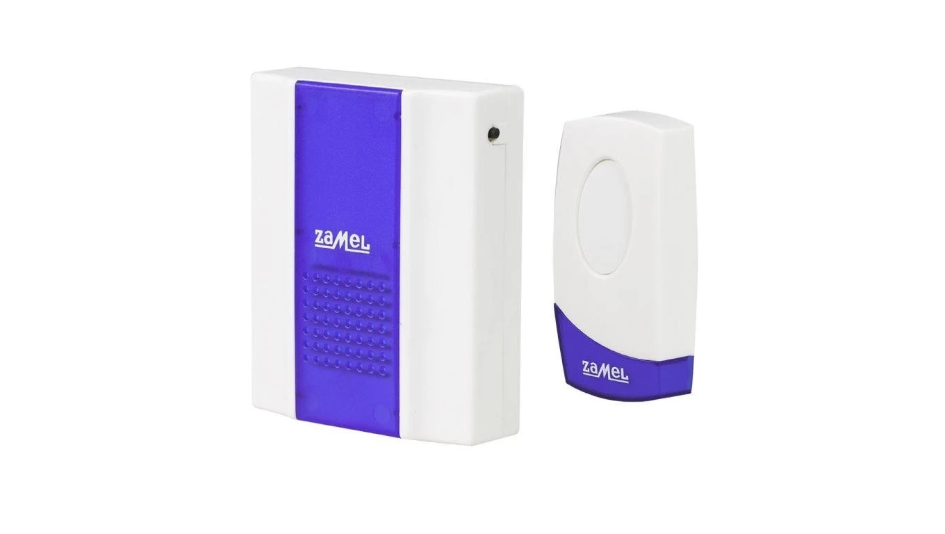 Dzwonek bezprzewodowy bateryjny z przyciskiem zasięg 80m, Twist ST-918, biało-niebieski o numerze katalogowym SUN10000033 w kategorii Dzwonki bezprzewodowe, Dzwonki i gongi. Produkt wyprodukowany przez markę ZAMEL, seria SUNDI.