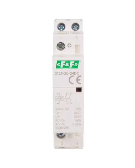 Stycznikmodułowy na szynę, styki 2xNO, 25A, 24V DC o numerze katalogowym ST25-20-24DC w kategorii Styczniki instalacyjne, Styczniki. Produkt wyprodukowany przez markę F&F.