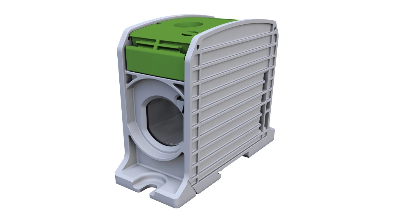 STB 300 Złączka szynowa gwintowa Al/Cu 87910 SIMBLOCK zielony o numerze katalogowym 81301005 w kategorii Bloki rozdzielcze, Wyposażenie i akcesoria. Produkt wyprodukowany przez markę SIMET, seria STB.