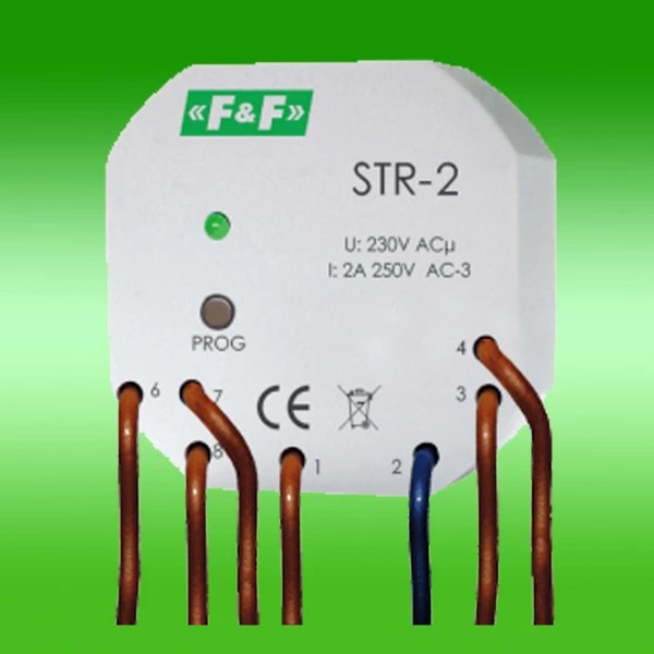Sterownik rolet STR-2 jednoprzyciskowy, Un=230V AC, 8A, montaż w puszce podtynkowej fi 60 o numerze katalogowym STR-2 w kategorii Sterowniki, Aparatura sterująca. Produkt wyprodukowany przez markę F&F.