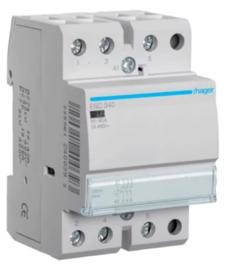 Stycznik 230VAC 3NO 40A AC-7a o numerze katalogowym ESC340 w kategorii Pozostałe, Niesklasyfikowane. Produkt wyprodukowany przez markę HAGER.