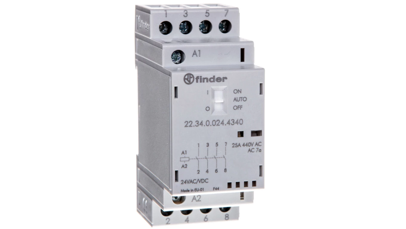 Stycznik modułowy 4Z 25A 24V AC/DC funkcja Auto-On-Off, wskaźnik zadziałania + LED, 35mm 22.34.0.024.4340