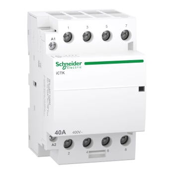 Stycznik modułowy, Acti9 iCTK50-40-40-230 40A 4NO 50Hz 220/240 VAC, bez możliwości rozbudowy o styki pomocnicze o numerze katalogowym A9C40440 w kategorii Styczniki instalacyjne, Styczniki. Produkt wyprodukowany przez markę SCHNEIDER ELECTRIC.