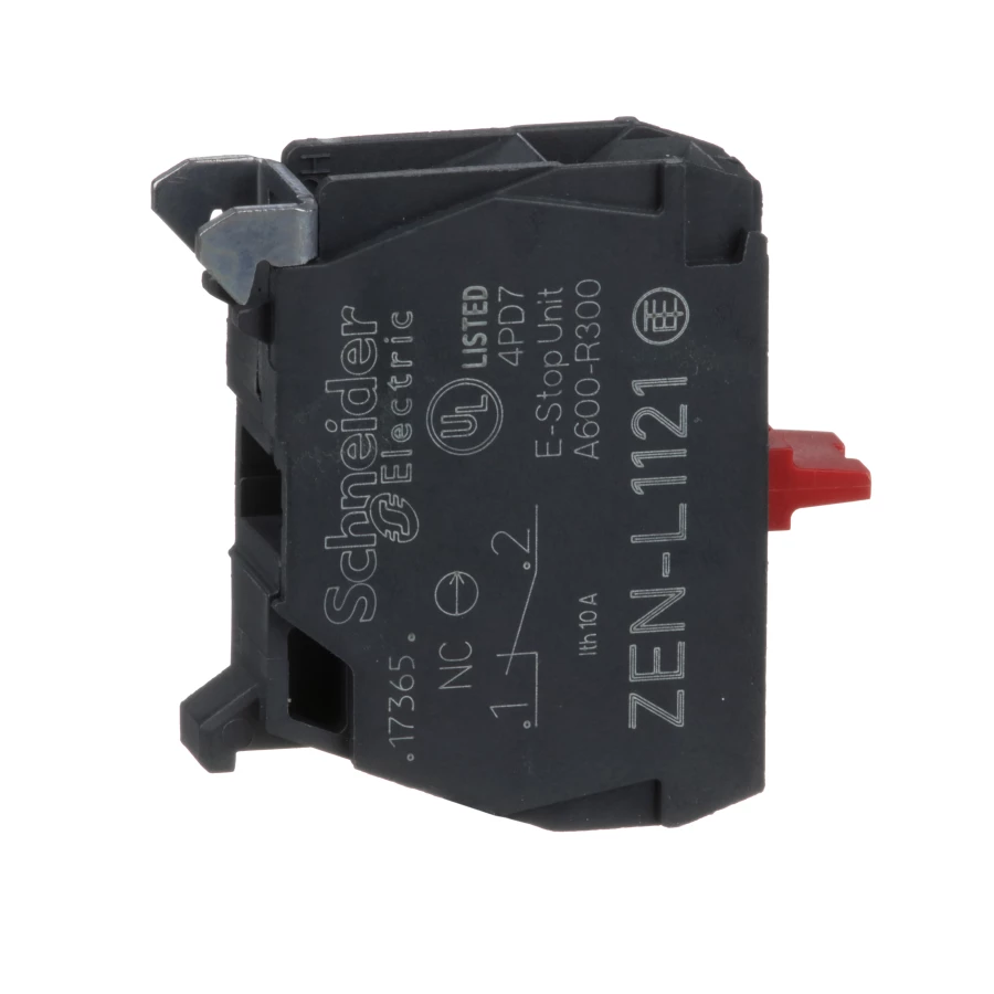 Blok styków pojedynczy dla głowicy 22 1 NC, zaciski śrubowe o numerze katalogowym ZENL1121 w kategorii Styki pomocnicze, Sterowanie i zabezpieczenie silników. Produkt wyprodukowany przez markę SCHNEIDER ELECTRIC, seria XB.