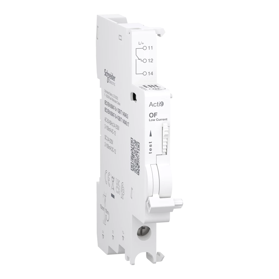 Styk pomocniczy Acti9 OF, 2-100 mA, 1 przemienny (1 CO), zaciski dolne A9N26914