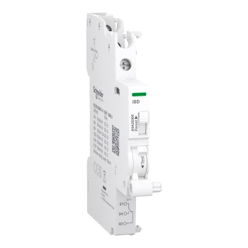 Styk sygnalizacyjny Acti9 iSD (wskazanie wyzwolenia elektrycznego), 1 przemienny (1 CO), zaciski górne o numerze katalogowym A9A26906 w kategorii Styki pomocnicze, Sterowanie i zabezpieczenie silników. Produkt wyprodukowany przez markę SCHNEIDER ELECTRIC.