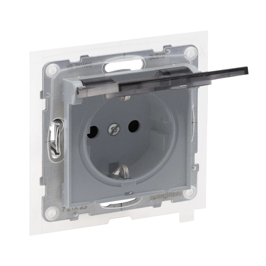 Gniazdo SCHUKO 2P+Z- 16 A - 250 V~ - z przesłoną IP44 - zaciski automatyczne, ALUMINIUM SUNO o numerze katalogowym 721323 w kategorii Gniazda podtynkowe, Gniazda instalacyjne. Produkt wyprodukowany przez markę LEGRAND, seria SUNO2.