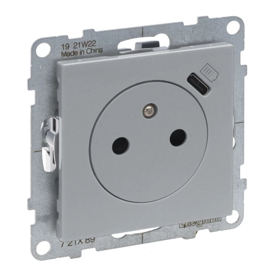 SUNO 2 MODUŁ ALUMINIUM GNIAZDO 1X Z/U+ GNIAZDO USB TYP C ZACISKI SPRĘŻYNOWE 16A 250V