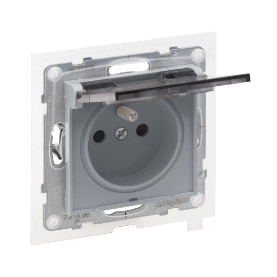 Simon 54 Gniazdo bryzgoszczelne z/u IP44 z klapką transparentną antracyt DGZ1BZ.01/48A
