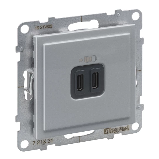 SUNO 2 MODUŁ ALUMINIUM GNIAZDO 2X USB TYP C+C 3A 5V