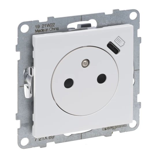 SUNO 2 MODUŁ BIAŁY GNIAZDO 1X Z/U+ GNIAZDO USB TYP C ZACISKI SPRĘŻYNOWE 16A 250V