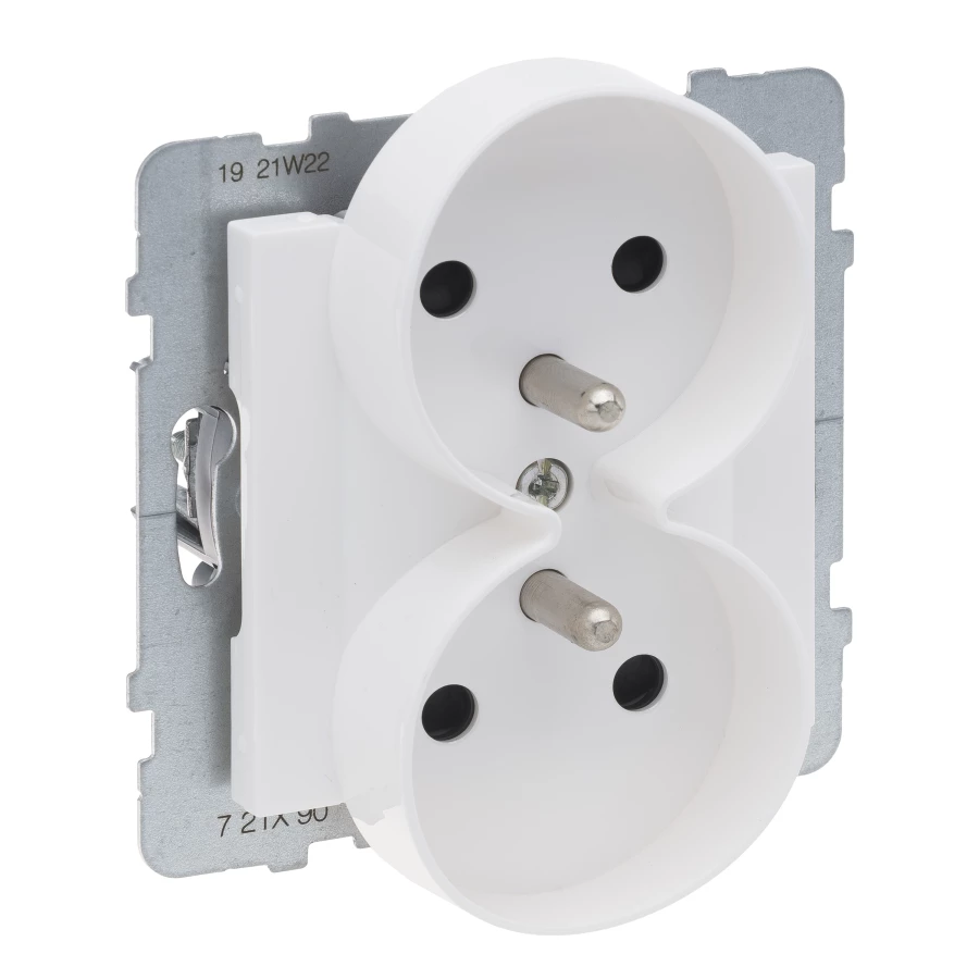 Gniazdo 2X2P+Z z przesłoną - 16 A - 250 V~ - zaciski automatyczne - możliwość montażu w ramkach wielkorotnych, BIAŁY SUNO o numerze katalogowym 721190 w kategorii Gniazda podtynkowe, Gniazda instalacyjne. Produkt wyprodukowany przez markę LEGRAND, seria SUNO2.