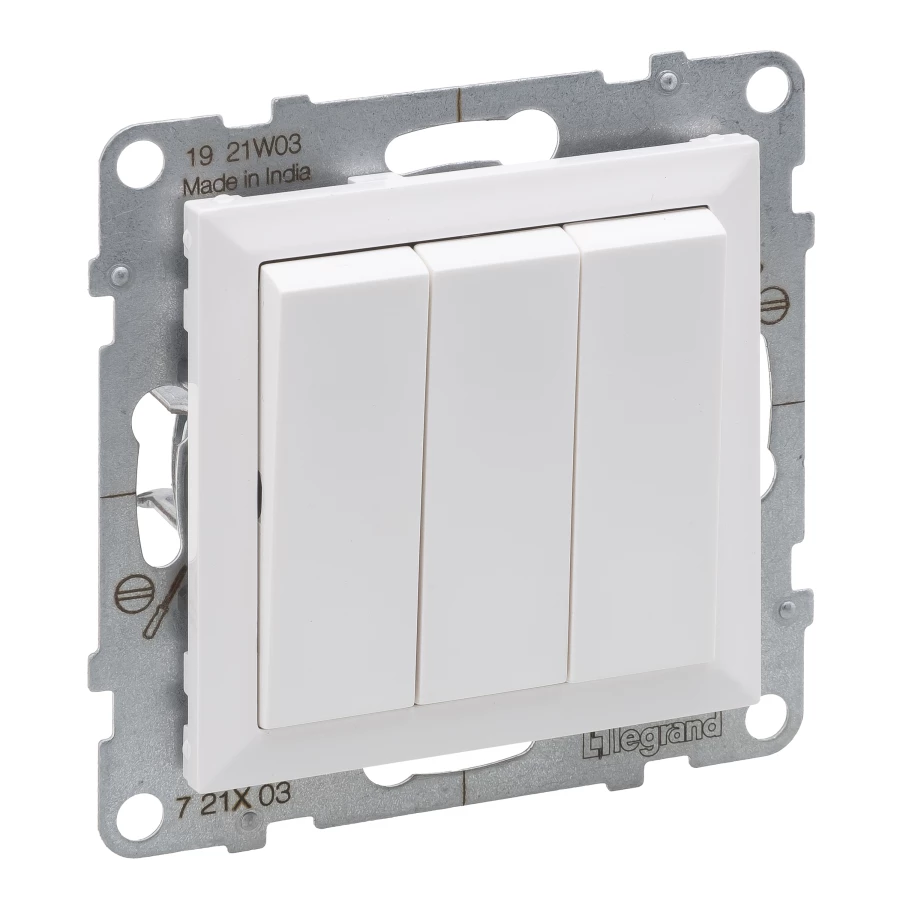 Łącznik potrójny - 20 AX - 250 V~ - zaciski śrubowe, BIAŁY SUNO o numerze katalogowym 721103 w kategorii Łączniki pozostałe, akcesoria podtynkowe, Łączniki i gniazda instalacyjne. Produkt wyprodukowany przez markę LEGRAND, seria SUNO2.