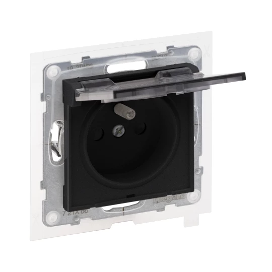 Simon 54 Gniazdo bryzgoszczelne z/u IP44 z klapką transparentną antracyt DGZ1BZ.01/48A