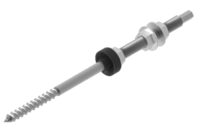 Śruba z gwintem podwójnym SWDM10x300E o numerze katalogowym 898830 w kategorii Konstrukcje PV, Konstrukcje montażowe. Produkt wyprodukowany przez markę BAKS, seria SWDM.