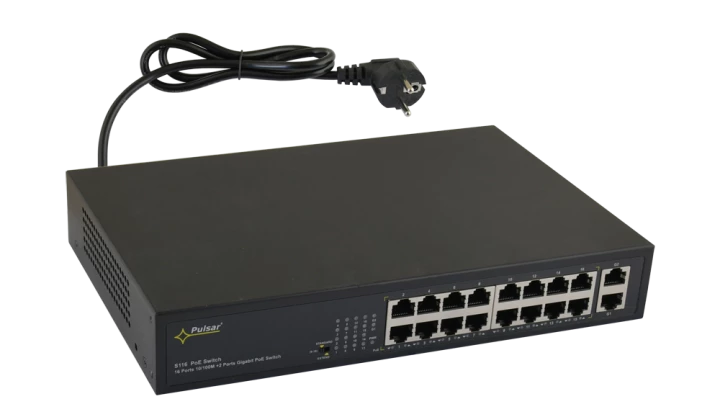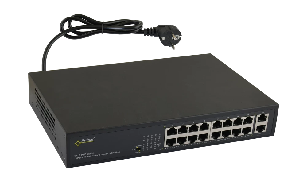 SWITCH 16-PORTOWY S116 DO 16 KAMER IP 18 PORTÓW (16XPOE + 2XUPLINK); 100÷240VAC; 270 X 44 X 181 BR