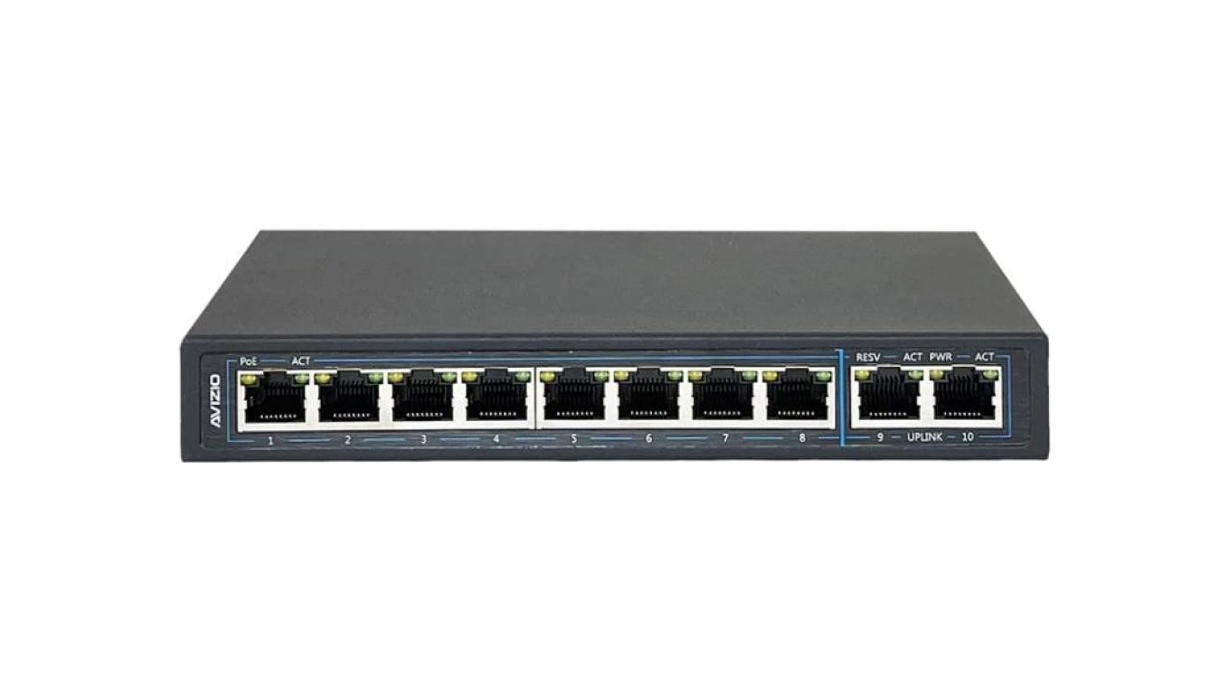 Niezarządzalny przełącznik (switch) 10xRJ45 - 8 portów RJ45 PoE+ 1Gb/s + 2 porty RJ45 Uplink 1Gb/s (budżet mocy 96W) AVIZIO o numerze katalogowym   AV-SU8GP2G w kategorii Infrastruktura IT>Szafy i wyposażenie IT. Produkt wyprodukowany przez markę A-LAN.