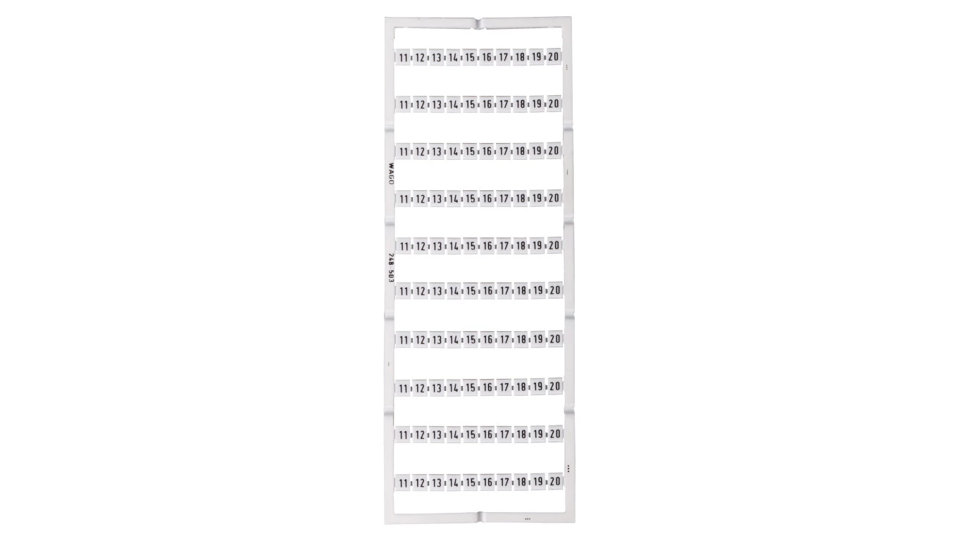 oznaczniki Mini-WSB; jako karta; z nadrukiem; 11 ... 20 (10x); nierozciągalne; nadruk poziomo; do montażu zatrzaskowego; biały