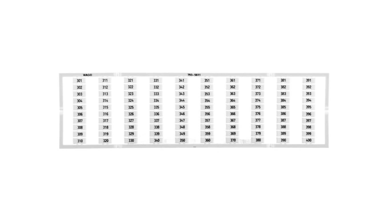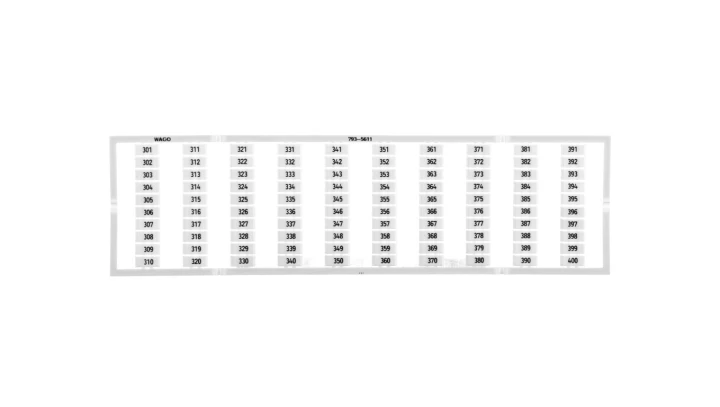 mata oznacznikowa WMB; jako karta; z nadrukiem; 301 ... 400 (1x); z możliwością rozciągnięcia z 5 mm do 5,2 mm; nadruk pionowo; do montażu zatrzaskowego; biały