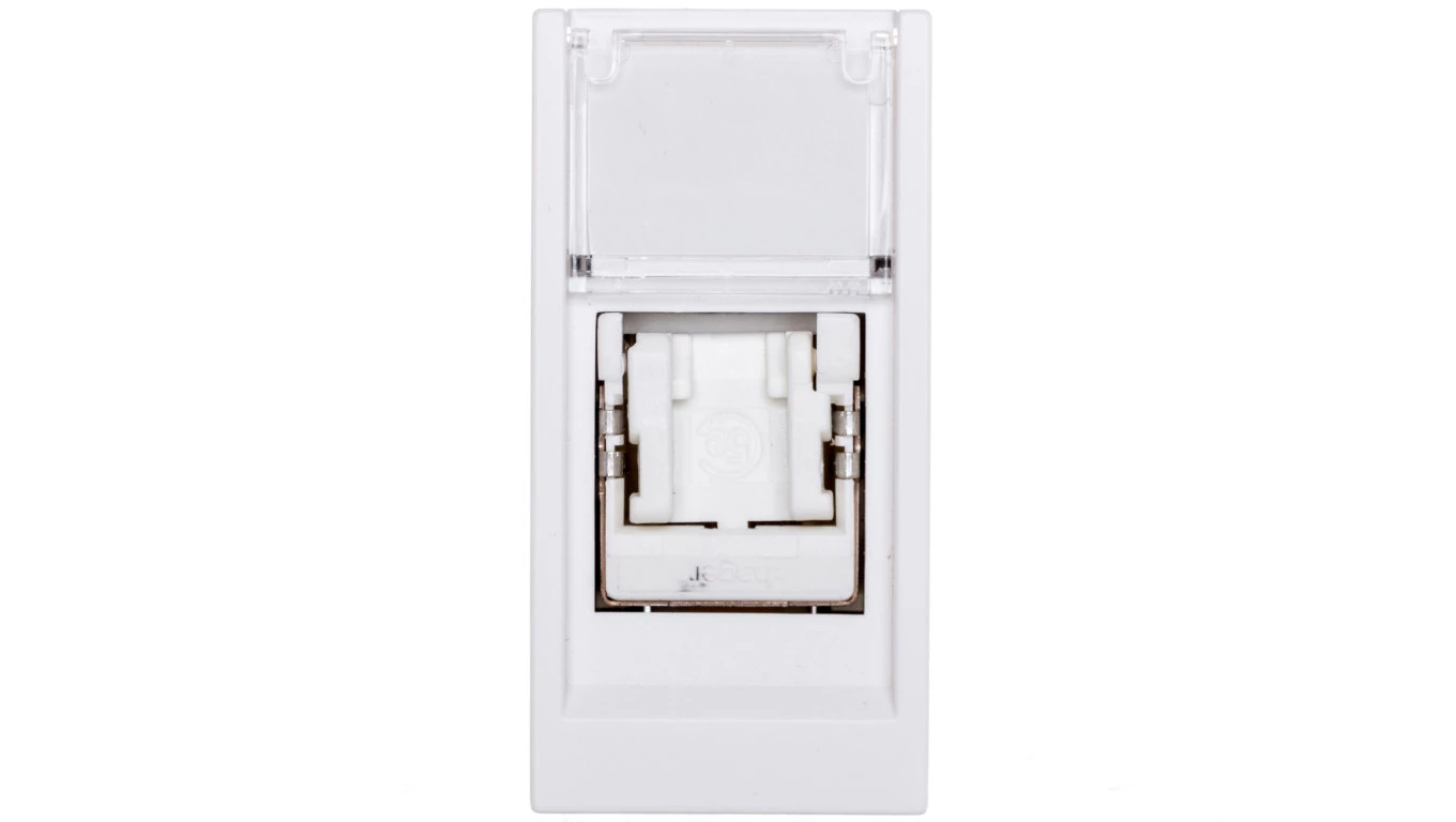 Simon 54 Gniazdo komputerowe pojedyncze RJ45 kat.6 z przesłoną białe D61.01/11