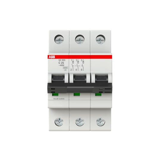 SZ203-C25 WYŁĄCZNIK NADPRĄDOWY CHARAKTERYSTYKA-C 6kA 25A 3P o numerze katalogowym 2CDS253025R0254 w kategorii Wyłączniki nadprądowe 6kA, Wyłączniki nadprądowe. Produkt wyprodukowany przez markę ABB, seria SZ200.