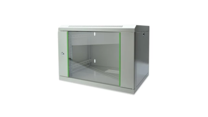 SZAFA WISZĄCA SIMPLE 19" 9UX555X400 MM IP 30, ŚCIANY BOCZNE PEŁNE, DRZWI Z SZYBĄ RAL 7035