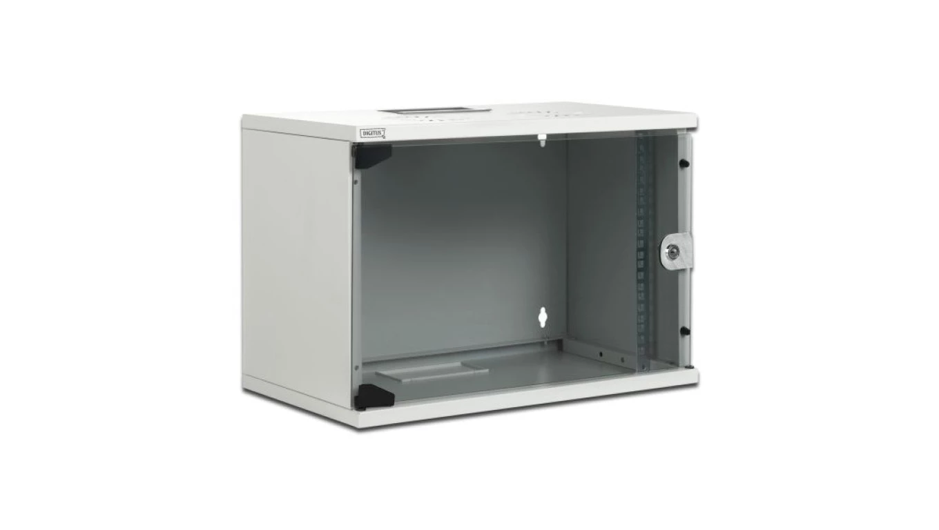 SZAFA WISZĄCA SIMPLE 19" 9UX555X400 MM IP 30, ŚCIANY BOCZNE PEŁNE, DRZWI Z SZYBĄ RAL 7035