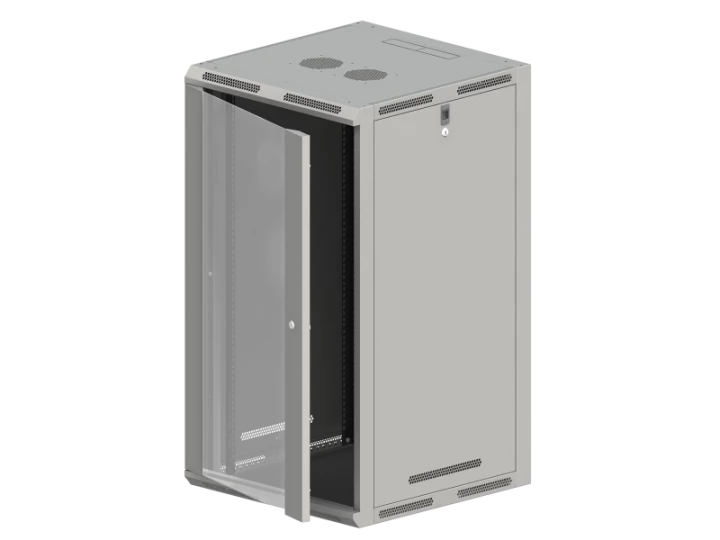 Szafa wisząco/stojąca 19" 18U 600x500, niedzielona, drzwi szklane jednoskrzydłowe, tył osłona pełna, osłony boczne ruchome perforowane, kolor szary, 4 belki, FLAT PACK o numerze katalogowym SW-18U-600-500-N-DSJ-OP-RP-B-S w kategorii Szafy i wyposażenie IT, Infrastruktura IT. Produkt wyprodukowany przez markę ALANTEC, seria 18U.