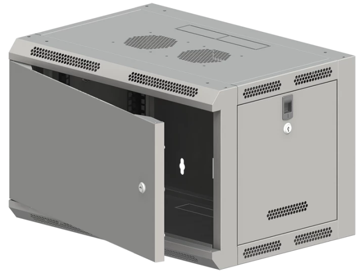 Szafa rack wisząca 19 cali 6U 600x500, niedzielona, drzwi metalowe, kolor szary FLAT PACK